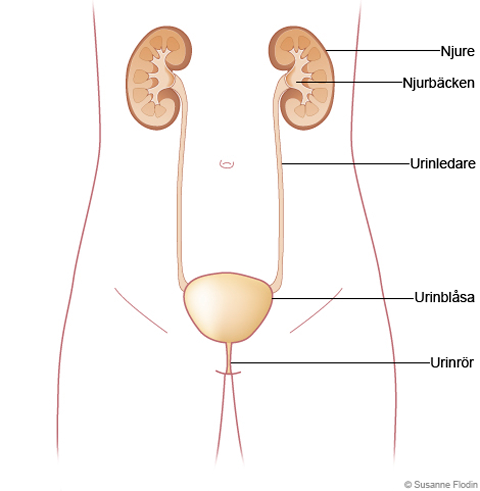 Urinvägarna består av njurar, njurbäcken, urinledare, urinblåsa och urinrör.